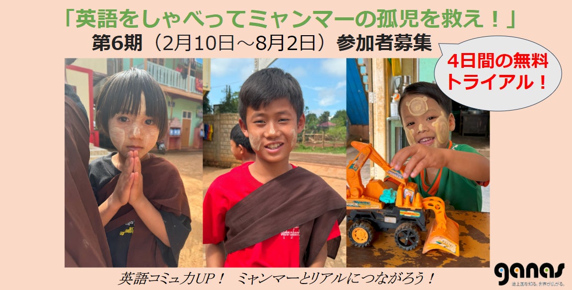 【〆切2/5】「英語をしゃべってミャンマーの孤児を救え!」第6期(2月10日~8月2日)参加者募集~無料トライアルも