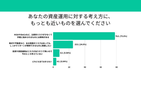 ・「比較的リスクが少なく始めやすい制度に興味がある」人は75.0%(78人)