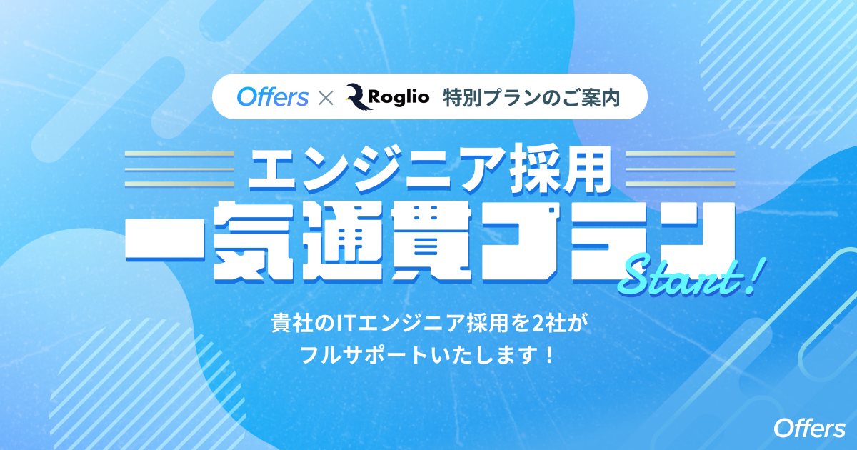 この度の提携を記念し、ログリオからの紹介でOffersのサービスをお得に利用できるプランの提供、またOffersからのご紹介で、ログリオからエンジニア採用戦術に関する無料アドバイザリーを、限定数でご用意いたしました。