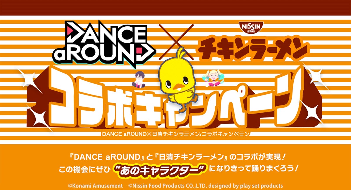 株式会社コナミアミューズメントは、最新ダンスゲーム『DANCE aROUND』(ダンスアラウンド)にて本日4月27日(水)から「DANCE aROUND×日清チキンラーメン コラボキャンペーン」を開始したことをお知らせします。
