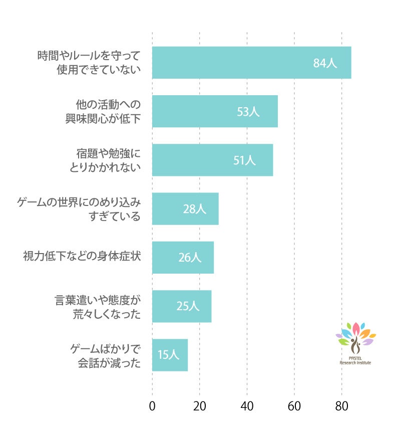 となり、約半数のお母さんがゲームとの付き合い方がよくないと感じていることが分かりました。