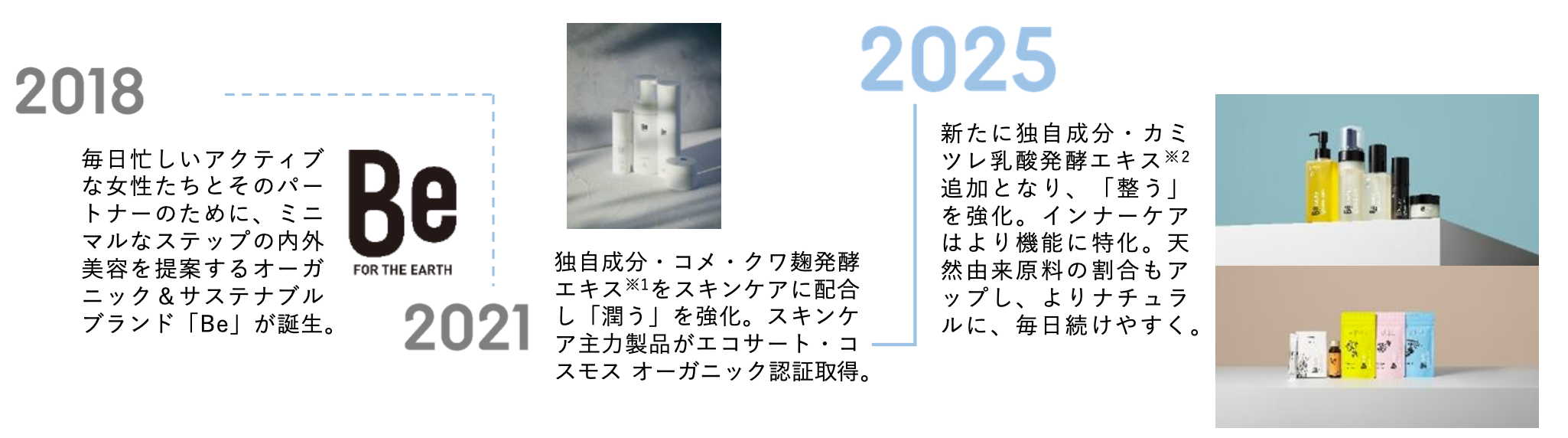 Be(ビー)は2018年にデビュー。スキンケア、インナーケア、ヘア&ボディケアを展開する、国産にこだわったオーガニック&サステナブルブランドです。