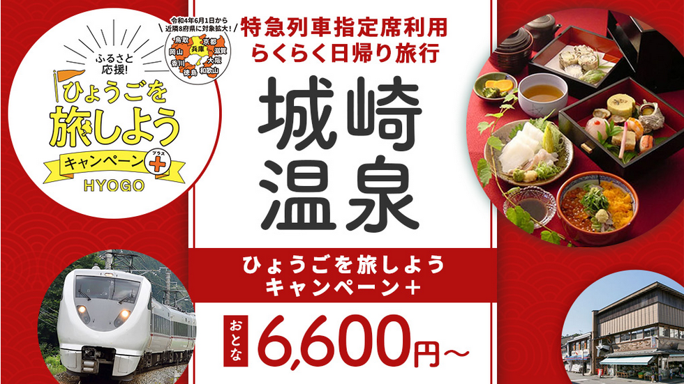 【兵庫県・滋賀県・京都府・和歌山県・奈良県・鳥取県・岡山県・徳島県・香川県在住限定】特急こうのとりで行く!城崎温泉日帰りプラン (ひょうごを旅しようキャンペーン+)
