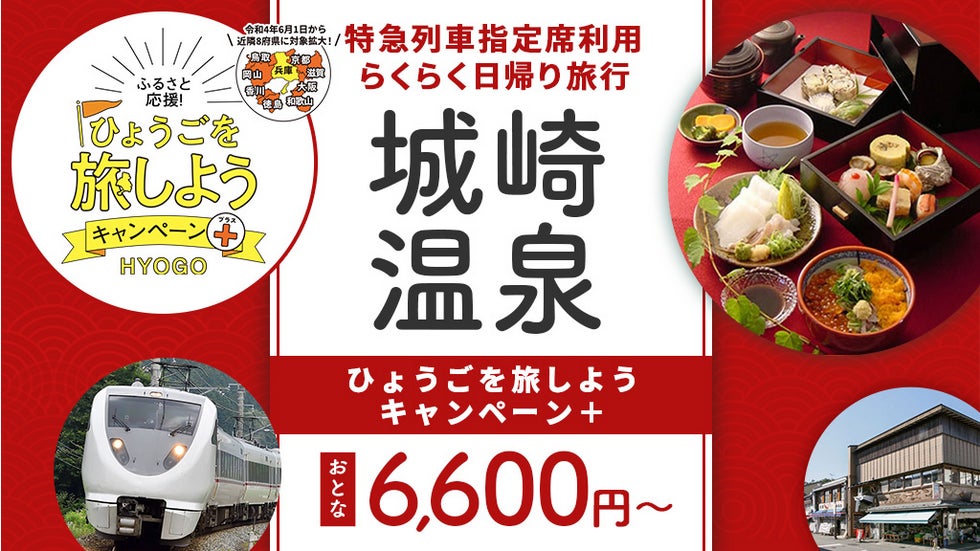 【8月31日迄延長!兵庫県・京都府・鳥取県・岡山県・香川県民限定!】5,900円で往復JR特急こうのとりで行く!「城崎温泉」日帰りプラン (ひょうごを旅しようキャンペーン+)販売開始
