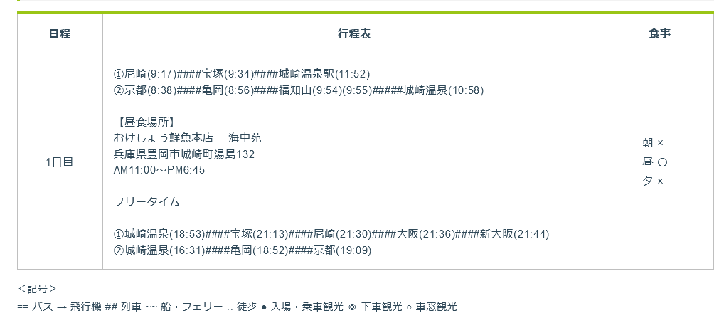 「城崎温泉」日帰りプラン