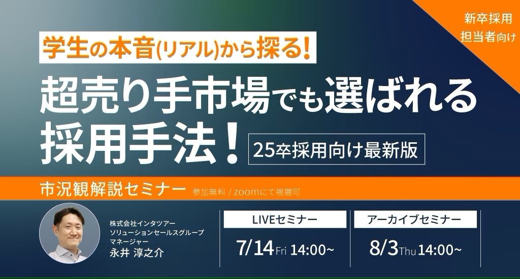 【新卒採用担当向け】25卒採用戦略の決め手!学生志向に即したマーケティング手法を解説するセミナーを開催|インタツアー