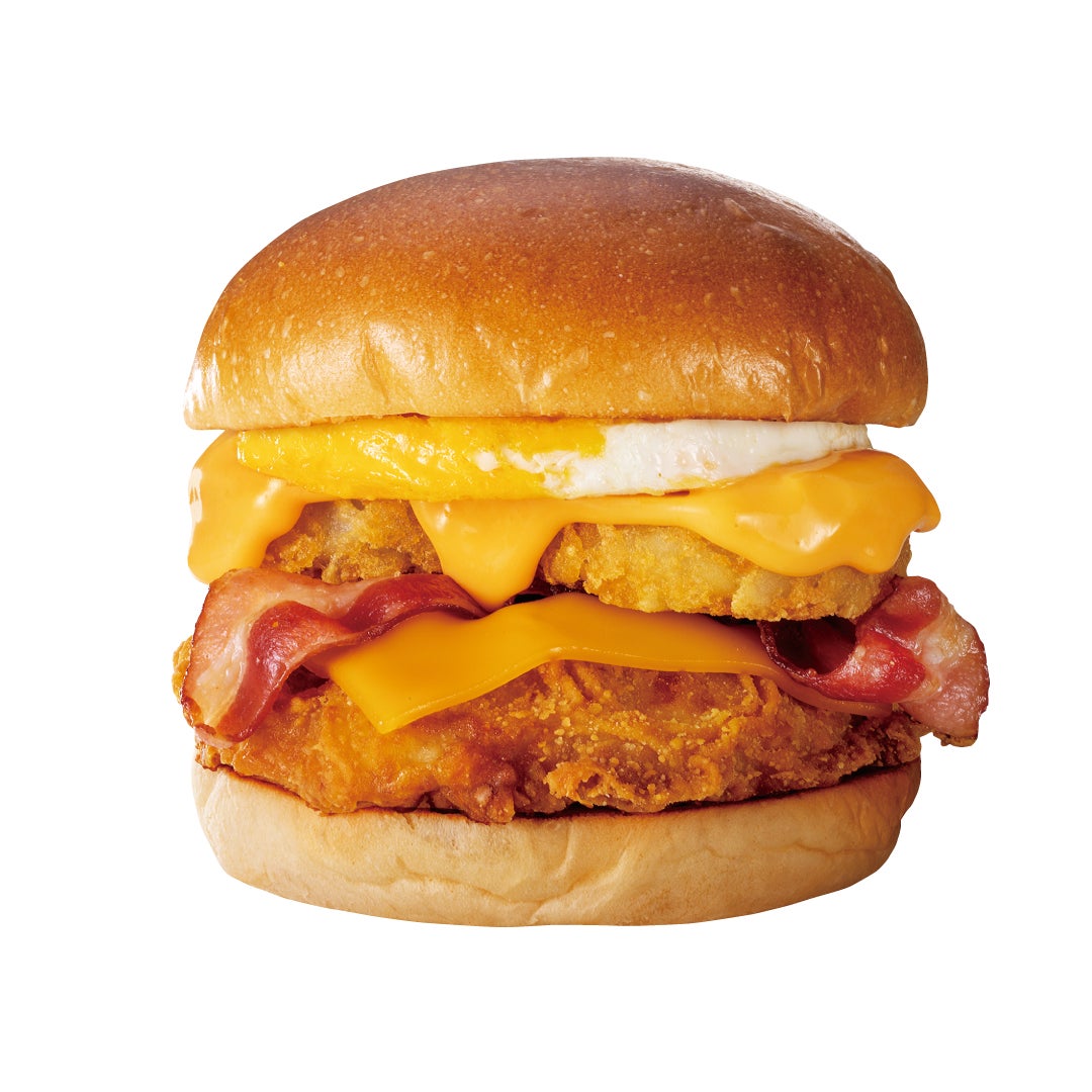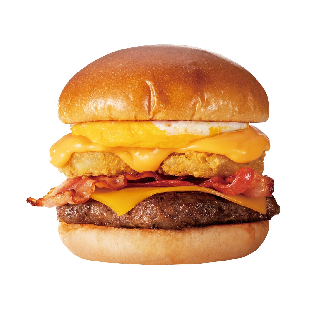 ウェンディーズオリジナルのシンプルな味わいのホームスタイルチキンに、今年は2種のチーズやアップルウッドで燻製した香ばしいカリカリのベーコンに、サクサク·ほくほく食感が特徴の丸いハッシュポテト2個を合わせました。とろ~りチーズの味わいや食感の違いが楽しめる、秋限定·月見バーガーです。