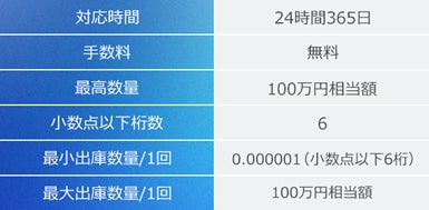 ※2 対応時間は当社のメンテナンス時間を除きます。出庫依頼は24時間365日受け付けておりますが、出庫にはお時間を頂戴する場合があります(詳しくはこちら)。小数点以下桁数未満については切り捨てとなります。