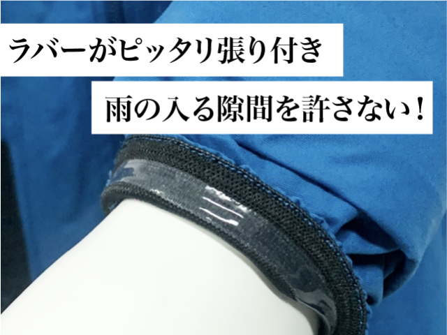 滑り止めラバーを含め2重構造で袖口からの雨風の侵入を遮断します。