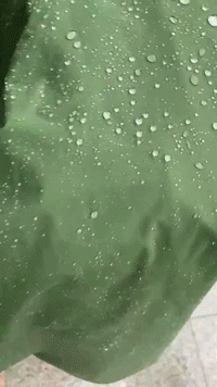 防水加工が施された生地と3層の防水設計を採用し、極端な暴風雨ももろともしない、レインコート。