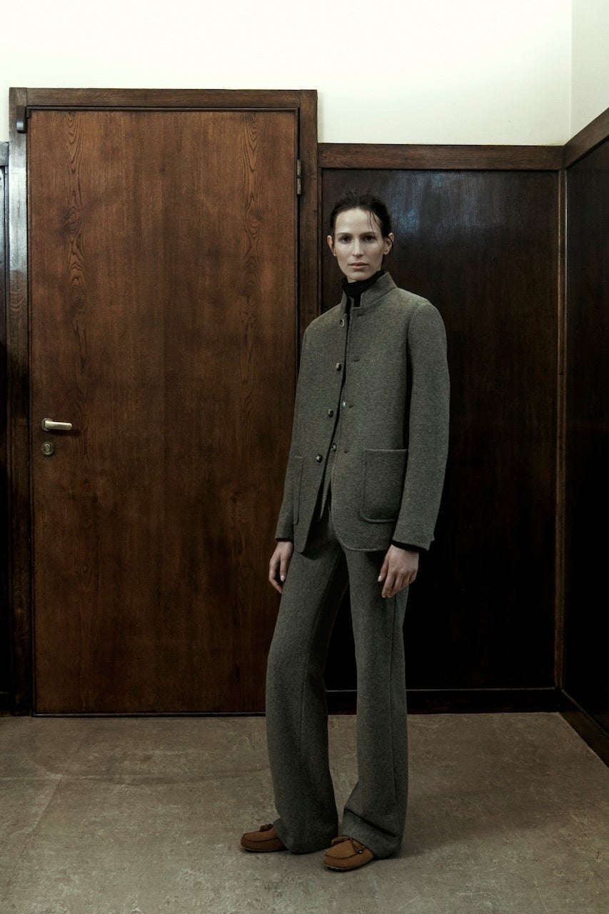 鮮やかなシンプルさ、力強いハーモニー。カーディガンのように柔らかく、きちんとした落ち着きのあるフォーマルさと使いやすさを兼ね備えたスパーニャ・ジャケットは、1998年に誕生しました。スペイン将校の制服からインスピレーションを得たこのジャケットは、立ち襟、ボタンレスの袖口、2つのパッチポケットが特徴で、独特のリラックス感を演出しています。究極の着心地と動きやすさを兼ね備え、メゾンならではの落ち着いたエレガンスを醸し出しています。伝統を現代的に再解釈したスパーニャ・ジャケットは、フォーマルなシルエットと洗練された構造を融合させ、究極の快適さと動きやすさを実現しています。実用的で洗練されたエレガンスを真に体現し、この現代的なアレンジにより、快適でエレガントな外観でありながら、現代的でカジュアルなルックを実現しています。