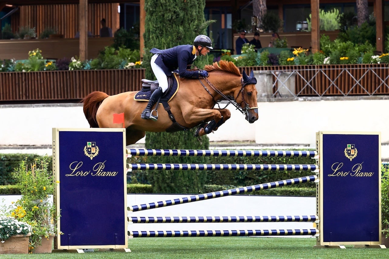 ロロ・ピアーナは、スポーツにおけるエレガンスと卓越性へのコミットメントを再確認し、ヨーロッパ最古の馬術競技会のひとつ、今年で92回目を迎えるピアッツァ・ディ・シエナ競技会に参加しました。これは、メゾンが馬術界と共有する伝統、フェアプレー、自然への愛という価値観をさらに深める重要な機会となっています。本競技会は5月22日から25日までローマで開催され、メゾン主催のロロ・ピアーナ・トロフィーとロロ・ピアーナ・シックスバーズは5月24日(土)に、ローマ中心部の歴史あるボルゲーゼ公園で開催されました。今年も、メゾンのスポーツカラーであるゴールドとブルーの旗のもと、ロロ・ピアーナのジャンピングチームを代表する選手、エドウィナ・トップス・アレクサンダーとロレンツォ・デ・ルカが競技に挑みました。