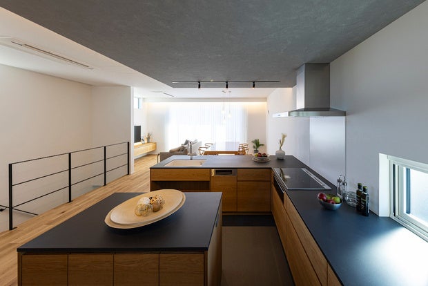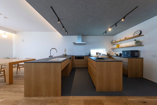 ▲真ん中に便利な作業台があるコの字型の料理が楽しくなるキッチン