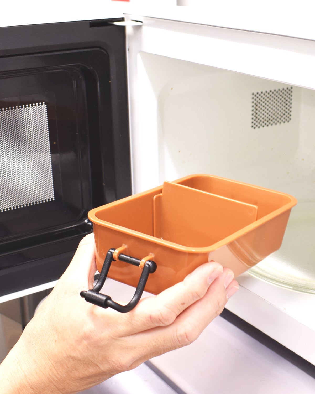 ④フタを外して電子レンジOK。すべてのパーツが食洗機OK。