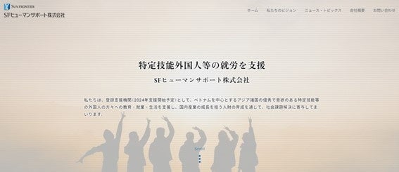 新会社では、当社グループ(サンフロンティアホテルマネジメント株式会社、SFエンジニアリング株式会社等)での就労支援からスタートし、段階的に、受入れ先企業様における外国人採用支援・育成事業などへ拡充し、3年後には年間100名の外国人財の就業を目指しております。
