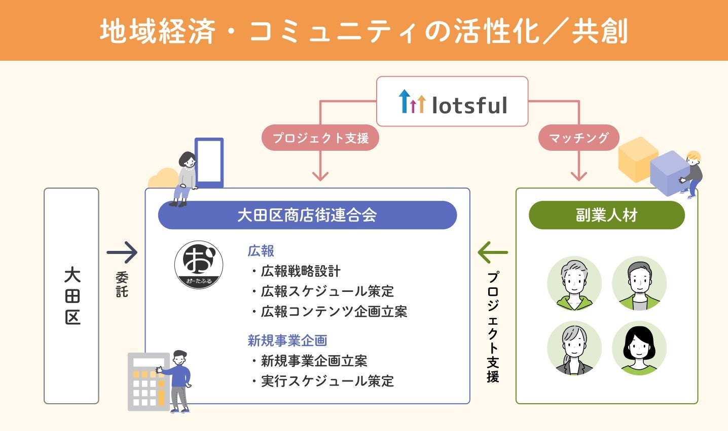 大田区商店街組織力強化支援 プロジェクト第二弾、広報戦略、新規事業企画の副業人材を『lotsful』で独占募集