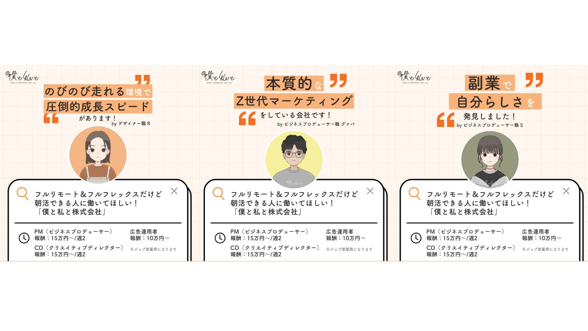 Z世代向けの企画・マーケティングを行う『僕と私と株式会社』は、朝型の生活リズムを持つ方を積極的に採用する「朝活採用」を2025年1月4日より開始いたします。すでに朝活で時間を最大限に活用している方、朝活で生産性の高い働き方をしている方はぜひご応募ください。