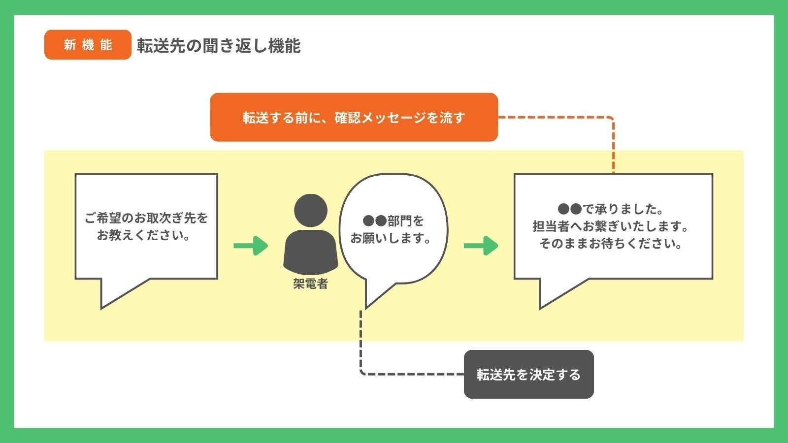 ・発話によるフローの分岐 ・転送先の聞き返し機能 |