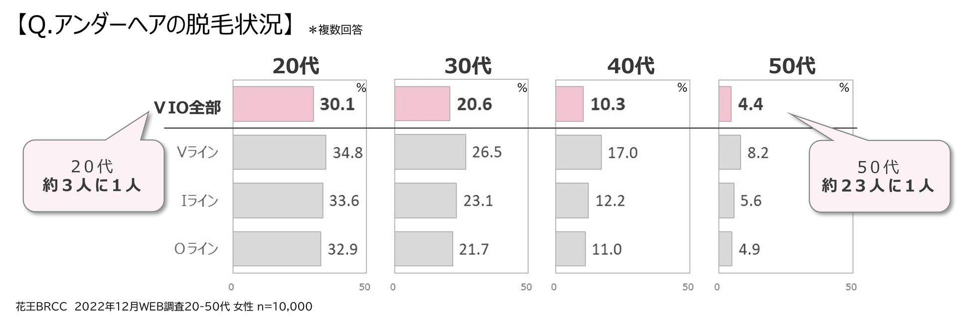 昨今ボディの脱毛市場が拡大し、アンダーヘア脱毛の需要は性別や年齢に関わらず今後も広がることが予測されます。アンダーヘア脱毛をきっかけに、デリケートゾーンの肌のお手入れへの関心が高くなることが示唆されました。