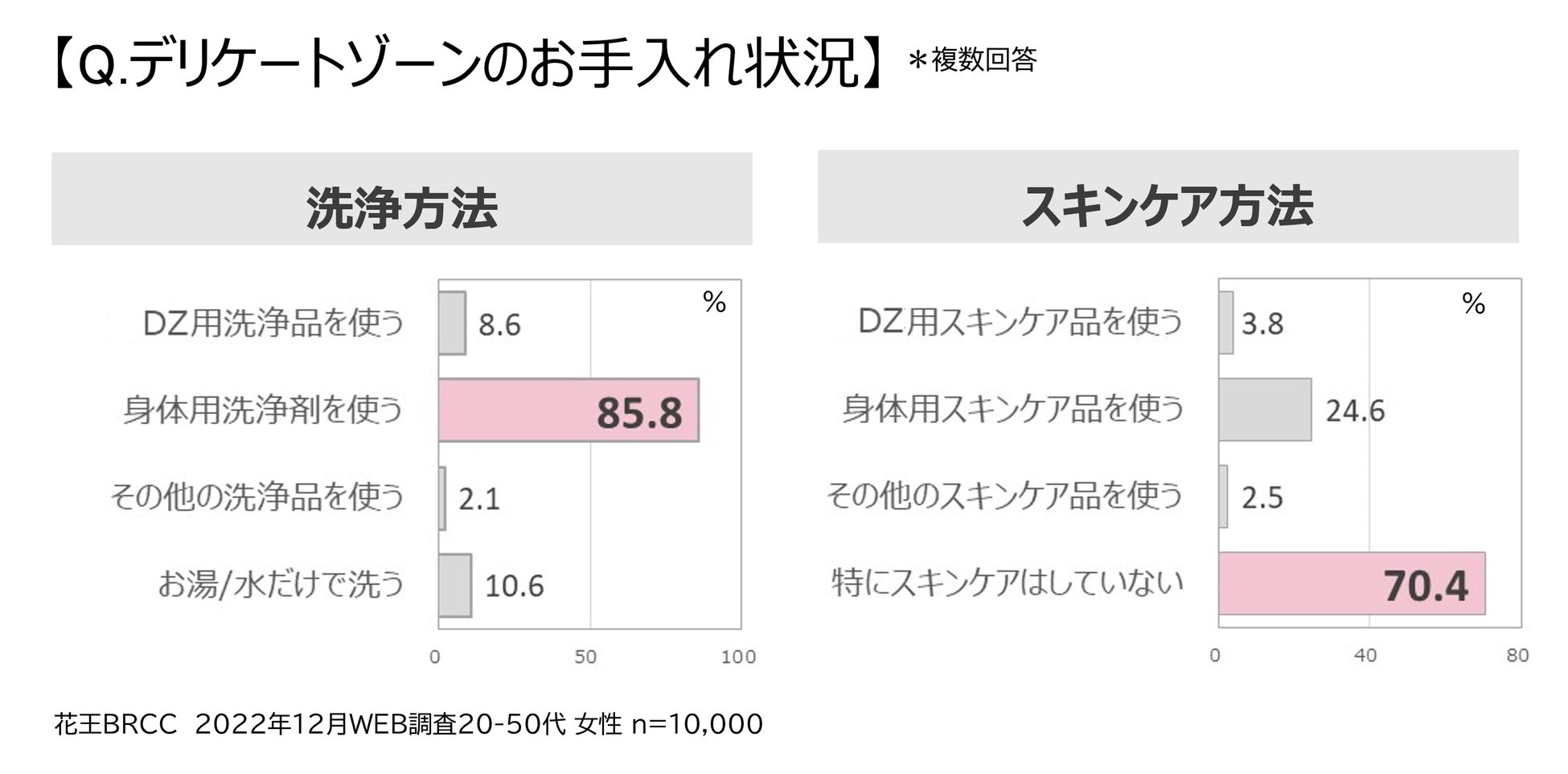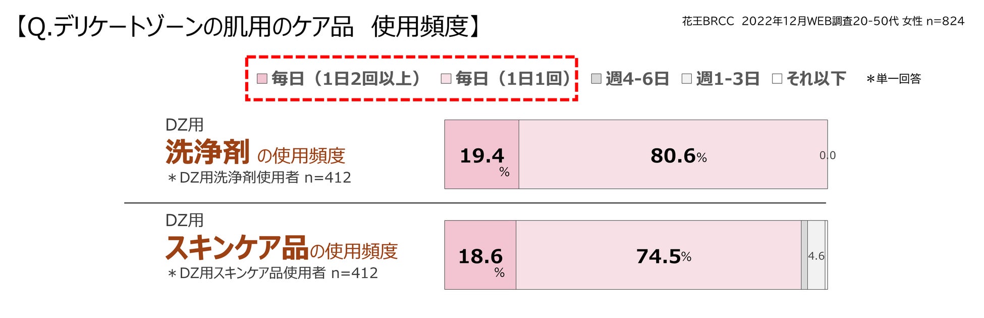 ※3 花王BRCC調査「デリケートゾーンの肌用洗浄剤またはスキンケア品使用者調査」:2023年10月20-50代女性n=56