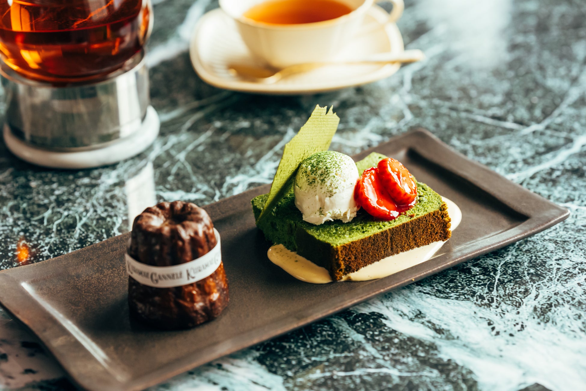 東京・蔵前のカヌレとのペアリングスイーツ専門店「KURAMAE CANNELÉ CAFE」にて、春の訪れを感じる『グランカヌレ&2層の抹茶テリーヌ』期間限定販売