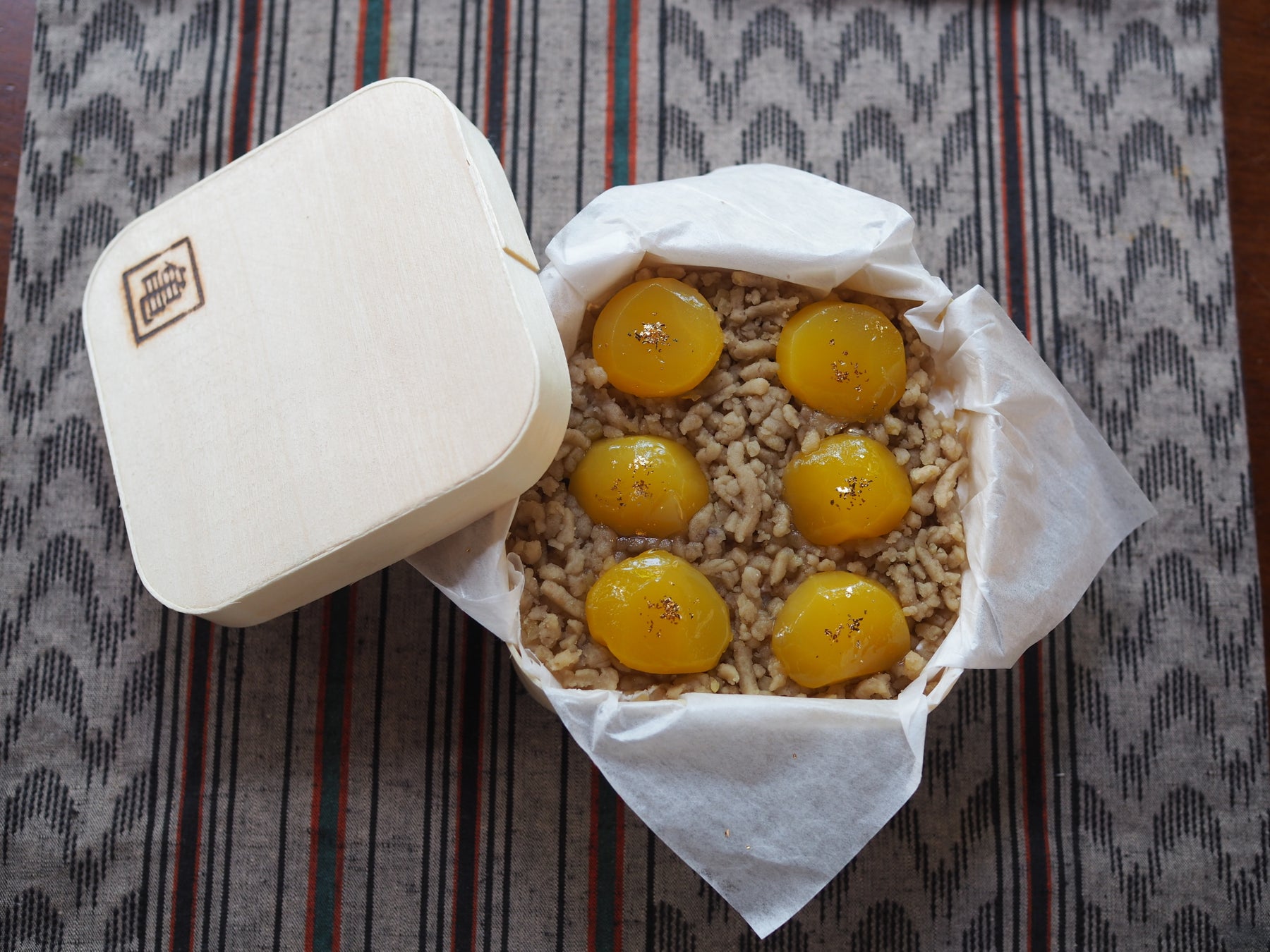 ③栗きんとん:国産和栗100%、手炊きならではの豊かな香り