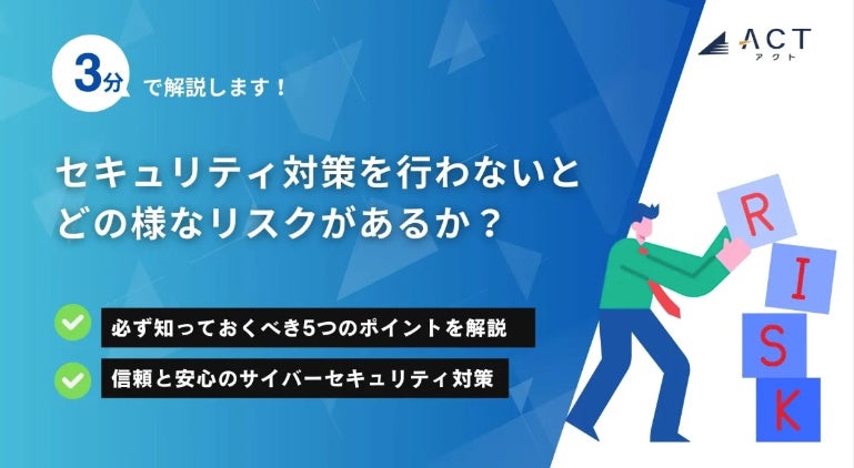 今年30周年を迎え、サイバーセキュリティ事業などを行う株式会社アクト(本社:東京都文京区、代表取締役CEO 小林 智彦 、以下 アクト)は【3分で解説!セキュリティ対策を行わないとどのようなリスクがあるか?】のホワイトペーパーを公開しました。