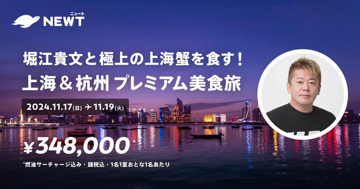 海外旅行予約アプリ『NEWT(ニュート)』、「堀江貴文と極上の上海蟹を食す!上海&杭州プレミアム美食旅」を開催