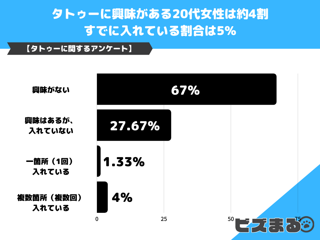 20代女性の40%ほどの方がタトゥーに興味を持っているという結果に。