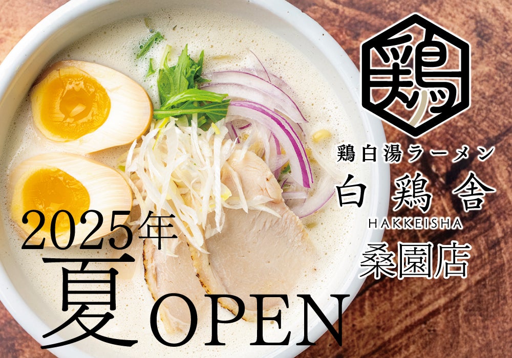 札幌を拠点に東北・関東で「北海道イタリアン ミアボッカ」「北海道小麦の生パスタ 麦と卵」などの飲食店を45店舗展開する株式会社イーストン(本社:北海道札幌市、代表取締役社長 大山泰正)は、『白鶏舎(ハッケイシャ)』桑園店を2025年夏頃にオープンいたします。焼鳥屋が本気でつくった鶏白湯ラーメンをぜひお楽しみください。