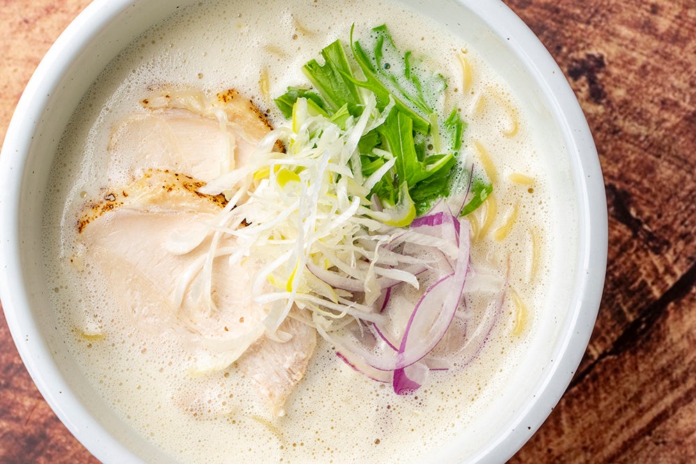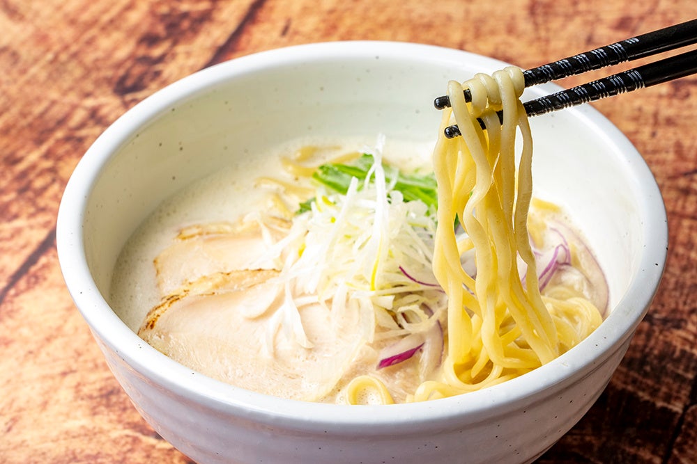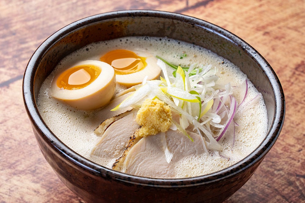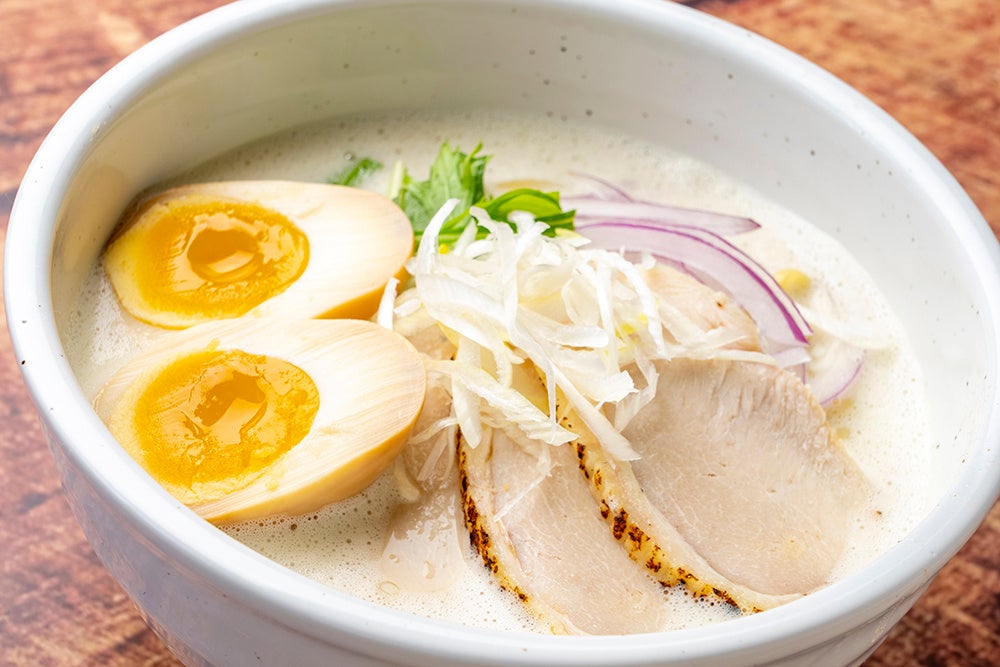 鶏を煮込んだ濃厚なコクとうま味をベースに豚骨をブレンドし甘みをプラス。ほんのり醤油の効いた程よい塩味とバランスのとれたクリーミーな味わいがクセになる一品。
