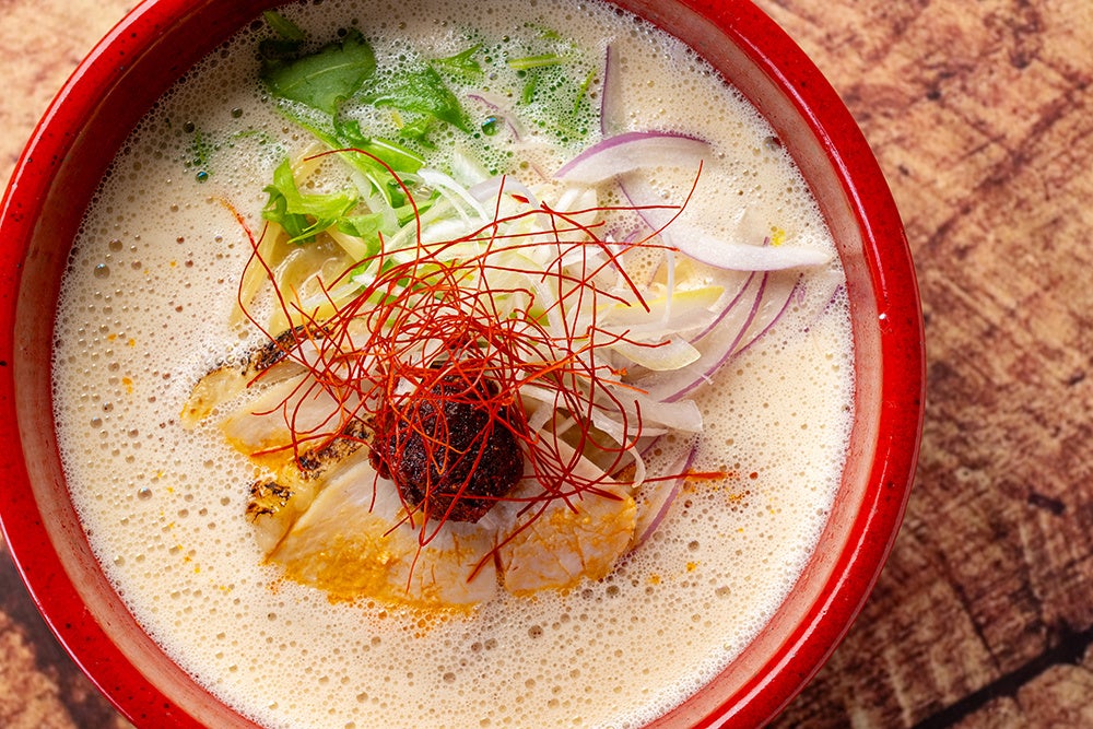 濃厚でコクがありながらも、食べやすい独特の旨みと、スープをブレンダーで泡立てることでよりなめらかでクリーミーな味わいが実現しました。