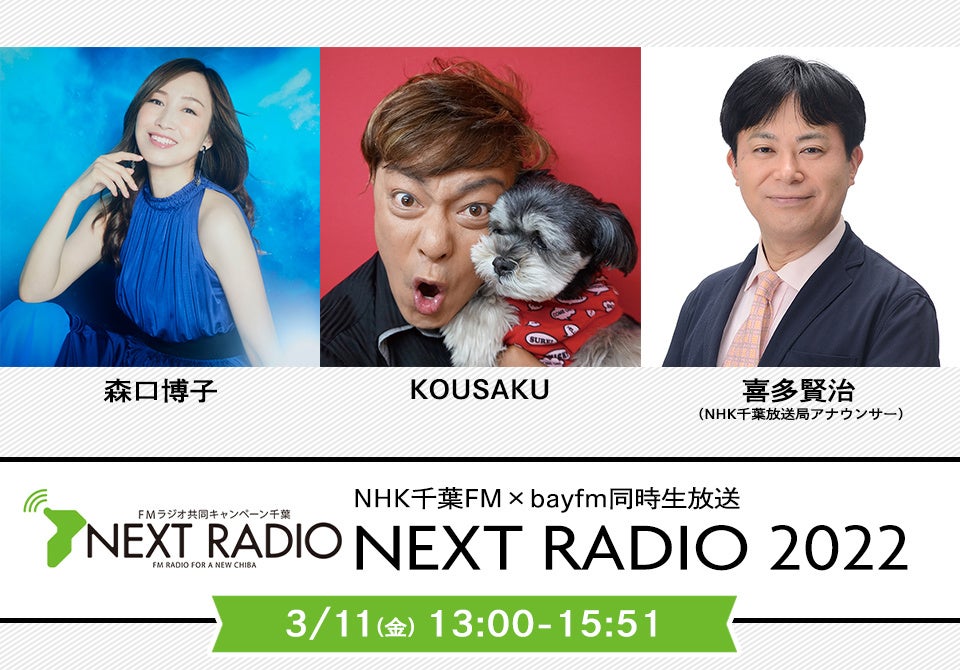 3月11日(金)13:00〜 千葉県ゆかりの放送局が垣根を超え、つながる絆のラジオ!NHK千葉FM×bayfm同時生放送 NEXT RADIO 2022