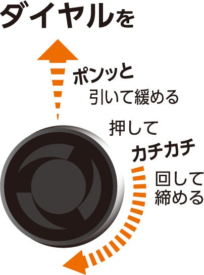 ◆ダイヤル式だから緩まない!片手で着脱が可能
