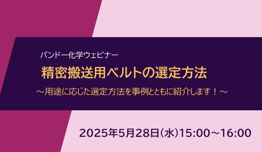 バンドー化学株式会社(本社:兵庫県神戸市)は、ウェビナー「精密搬送用ベルトの選定方法 ~用途に応じた選定方法を事例とともに紹介します!~」を開催いたします。