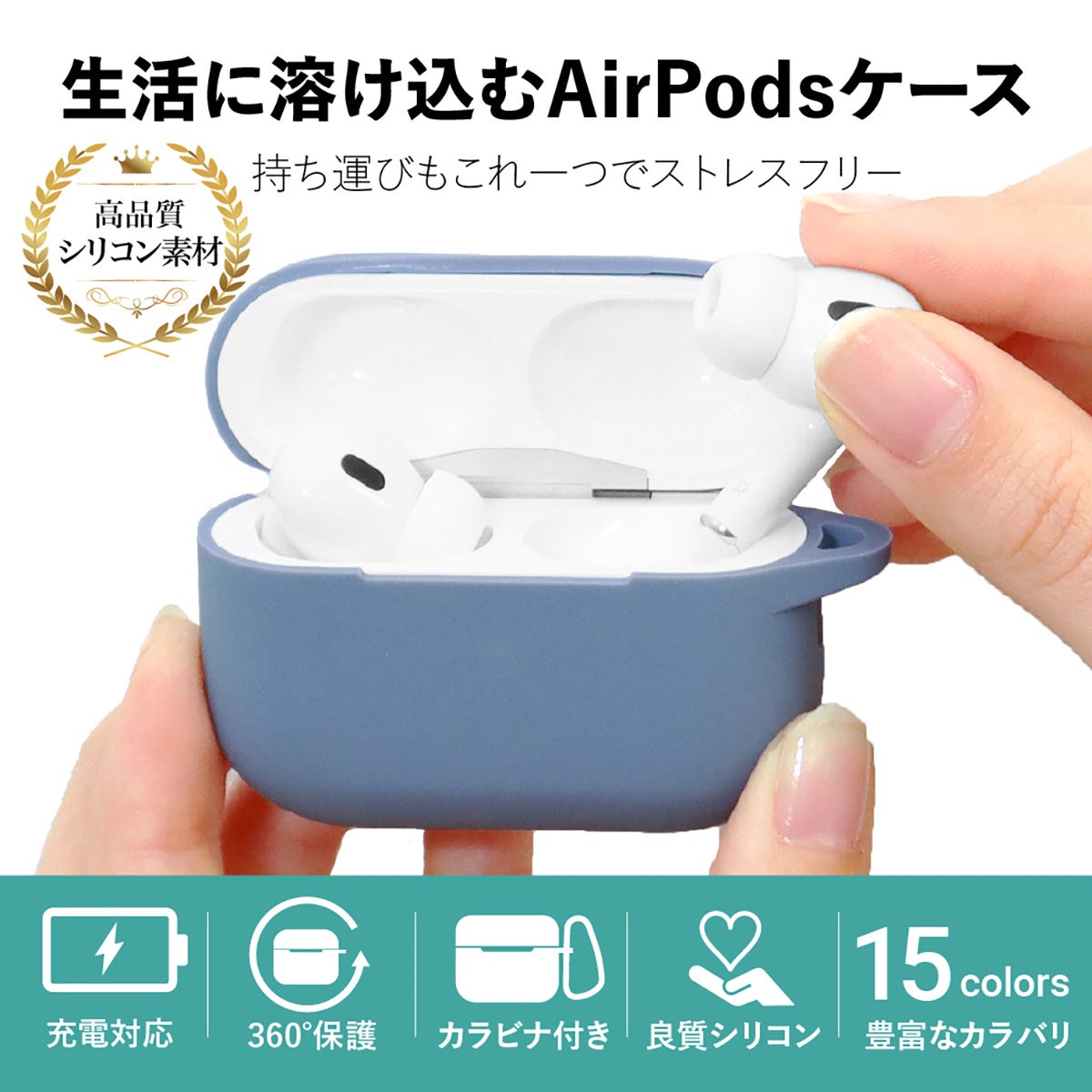 【9月4日-9月11日 楽天スーパーSALE 特別価格】AirPods Pro 2(第2世代)ケース (カラビナ付き) が20%OFF! おしゃれな15色展開で、ケースを付けたまま充電可能