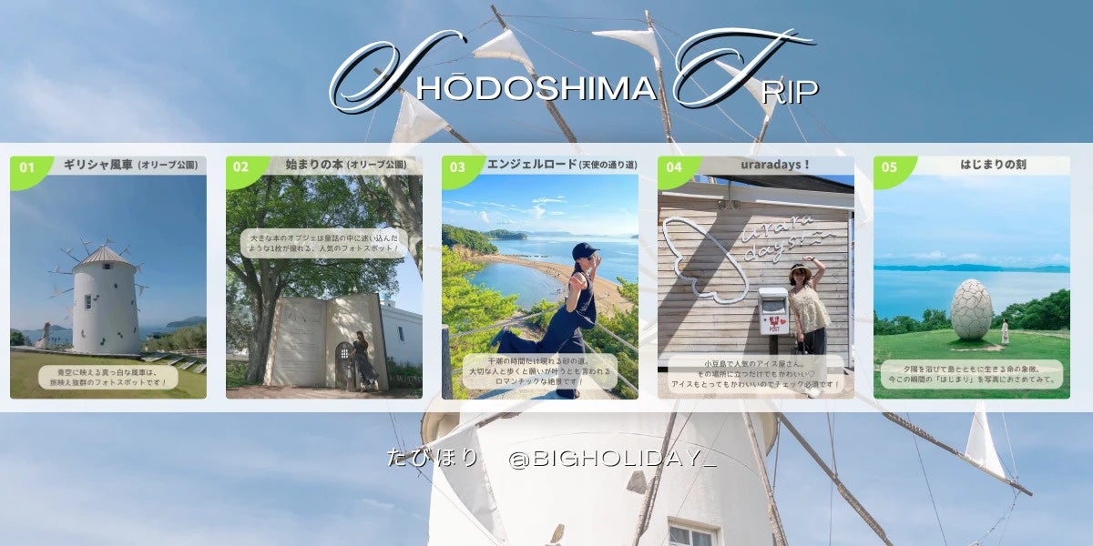 ビッグホリデー株式会社(本社:東京都文京区、代表取締役社長:岩崎 安利)は、当社公式Instagramアカウント「たびほり」および公式Xアカウントにて、2025年8月6日(水)~8月12日(火)の7日間限定で、香川のお土産(お一人様4,000円相当)を抽選で2名様にプレゼントするSNSキャンペーンを実施いたします。本キャンペーンは、旅コラム「今行かなきゃ後悔する!夏の女子旅で巡りたい小豆島の絶景フォトスポット7選」公開と連動して開催いたします。