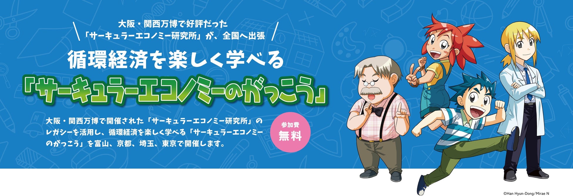大阪・関西万博で実施した「サーキュラーエコノミー研究所」で使用した一部の展示などをレガシーとして活用し、各地の小学生を対象にした授業型のイベント「サーキュラーエコノミーのがっこう」を開催します。2025年10月18日(土)の富山県での開催を皮切りに、11月に京都府、2026年1月に埼玉県、東京都の全国4会場で開催します。富山県での開催に関しては募集を開始しておりますので、詳細はURLをご確認ください。