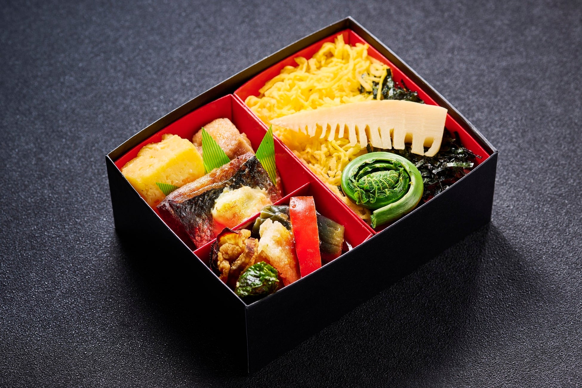 筍含め煮 錦糸玉子 刻み海苔 こごみ醤油煮