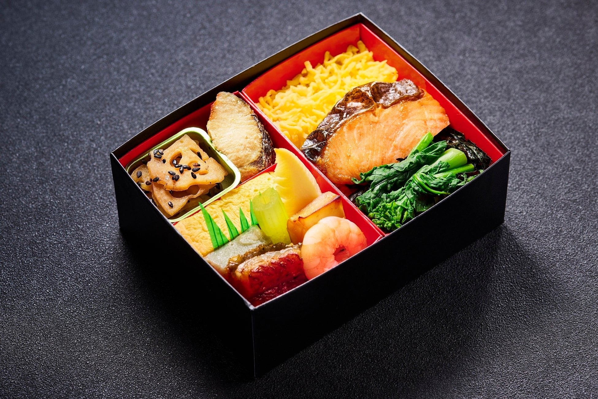 錦糸玉子 刻み海苔 鮭塩焼き 菜の花
