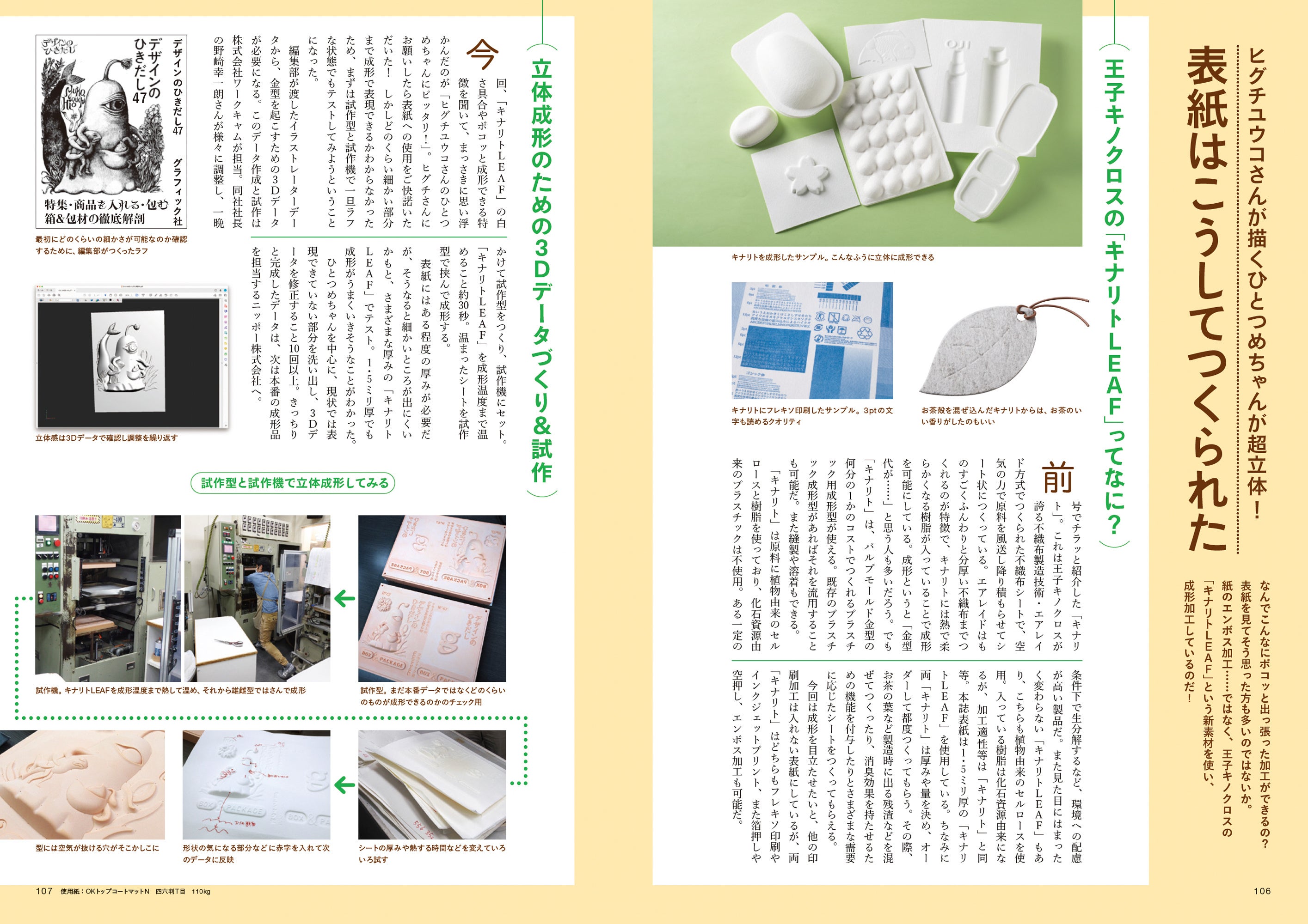 『デザインのひきだし47』表紙:ヒグチユウコさんのイラストを金型で起こし、パルプ成形したもの