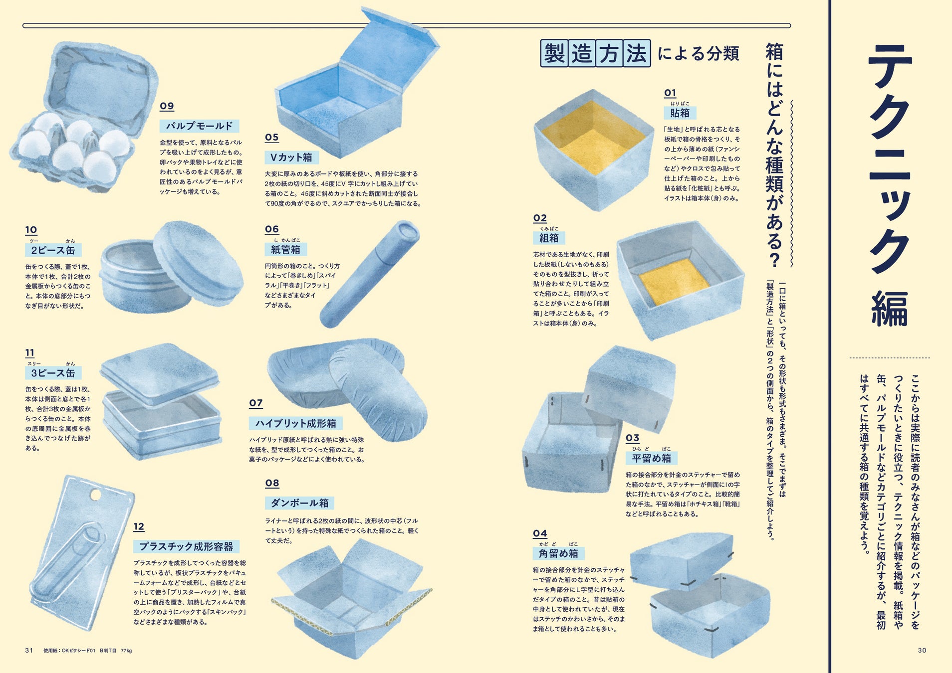 本特集では特徴ある紙箱、カラフルなダンボール箱、変わった形の箱、ソリッドな紙箱、オリジナル印刷やエンボスを入れた缶、ユニークな形がつくれて質感もよく注目のパルプモールドなど、つくってみたいパッケージはどこにどう頼めばつくれるのか、ガッツリまとめてご紹介します。