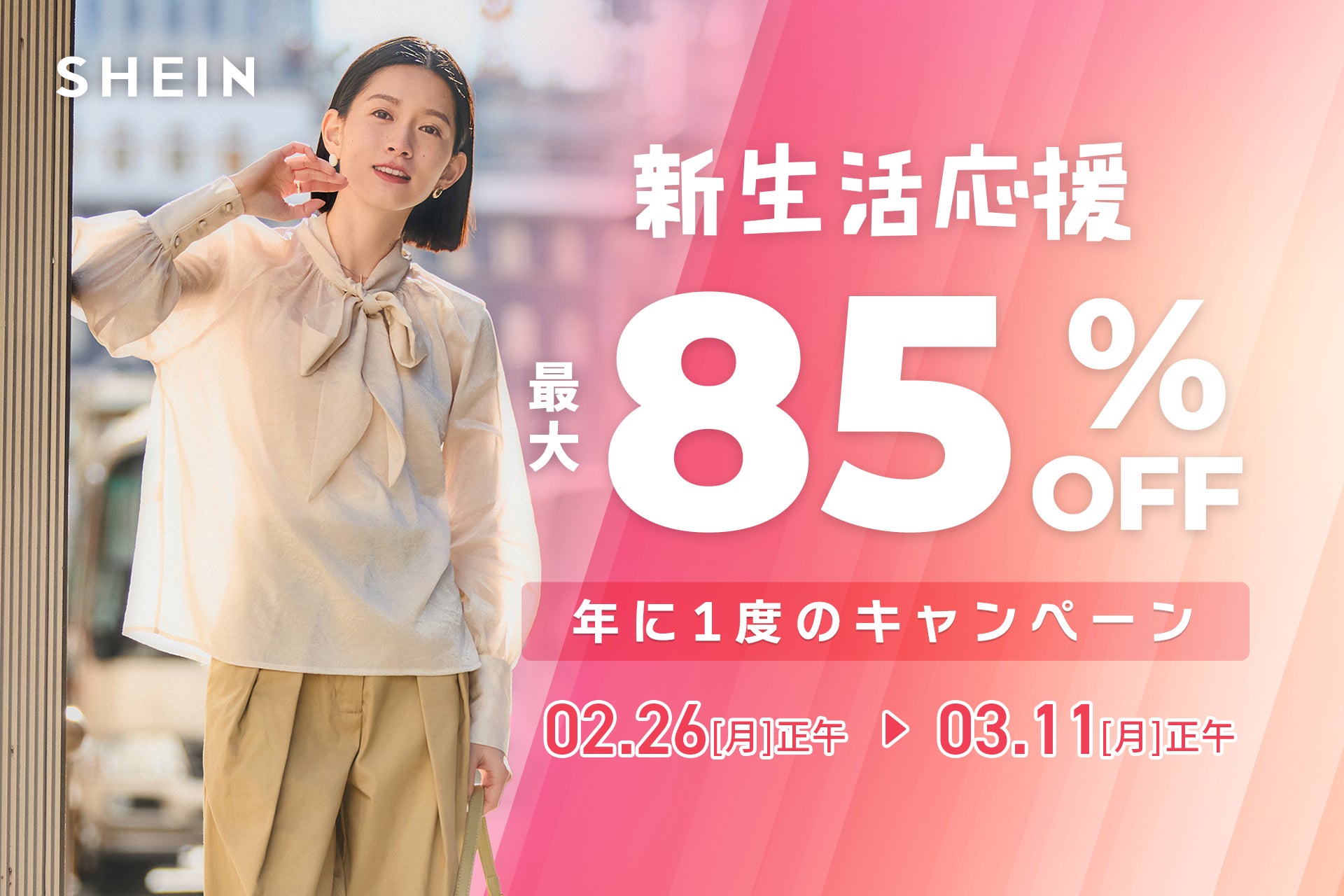 この度、2024年2月26日(月)12:00~2024年3月11日(月)12:00の期間限定で、新生活にぴったりなアイテムをお得にお買い求めいただける『#SHEIN 新生活応援セール』を開催いたします。