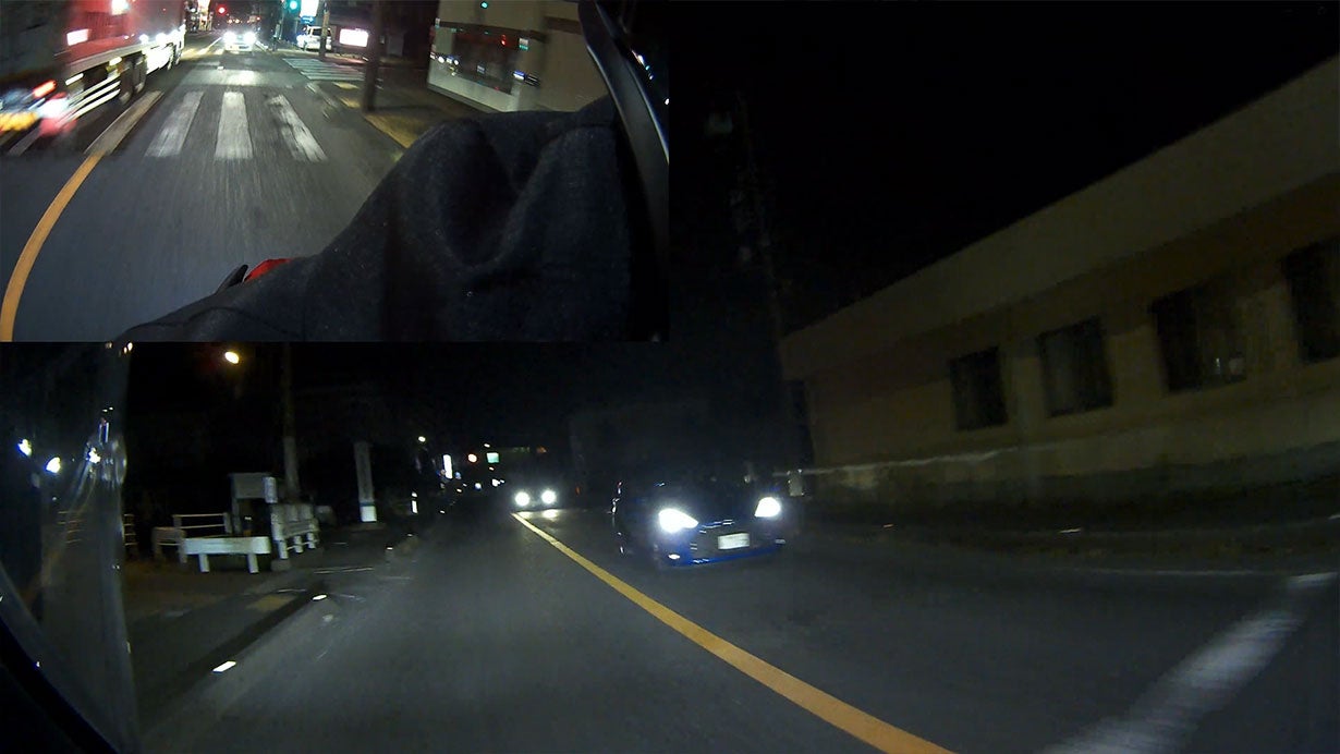 本機のフロントカメラ/リアカメラに搭載している高感度イメージセンサーは、夜間等低照度の環境下において対象物の色や形を認識性を向上するチューニングがされて、夜の映像もしっかり記録できます。