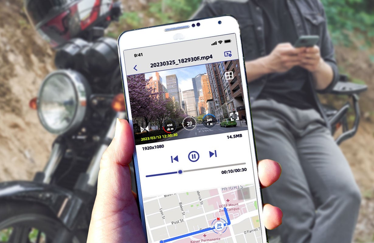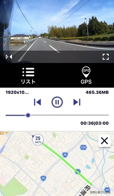 ◆GPS内蔵!アプリで撮影映像の再生+ルート再生もできる!