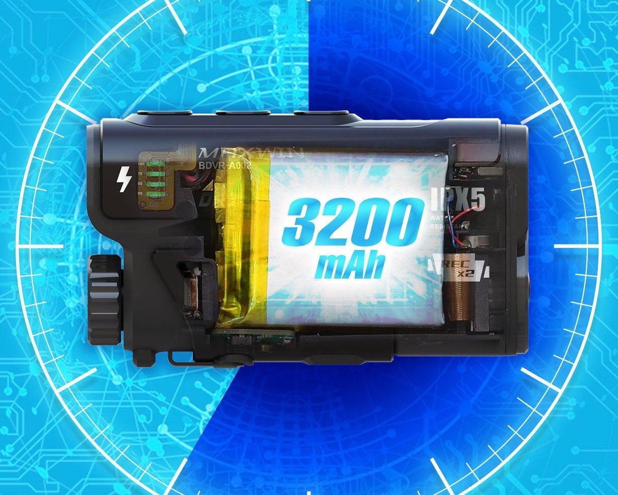 ◆フル充電で最大7時間の連続録画が可能!3200mAhリチウムポリマーバッテリー採用。