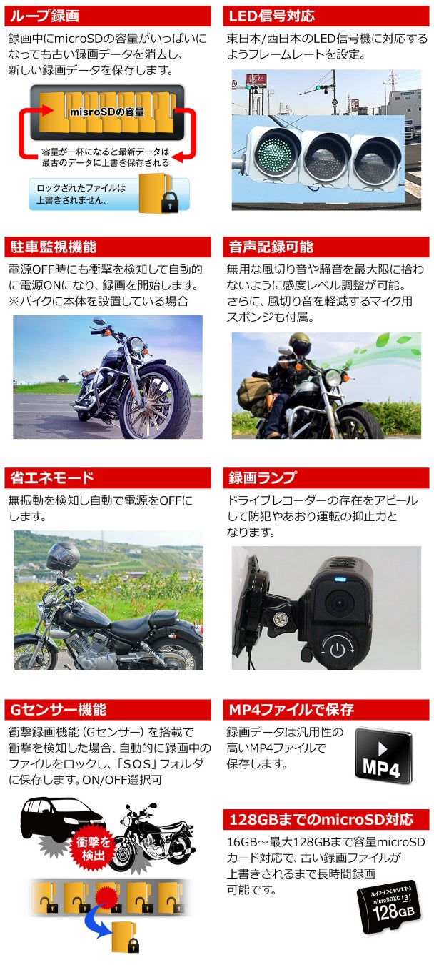 本製品二輪車用ドライブレコーダーはドライブレコーダーやデジタルインナーミラーの最先端を引率する車載製品のメーカーMAXWINからMAXWIN史上最高スペックとして開発生産された製品です。