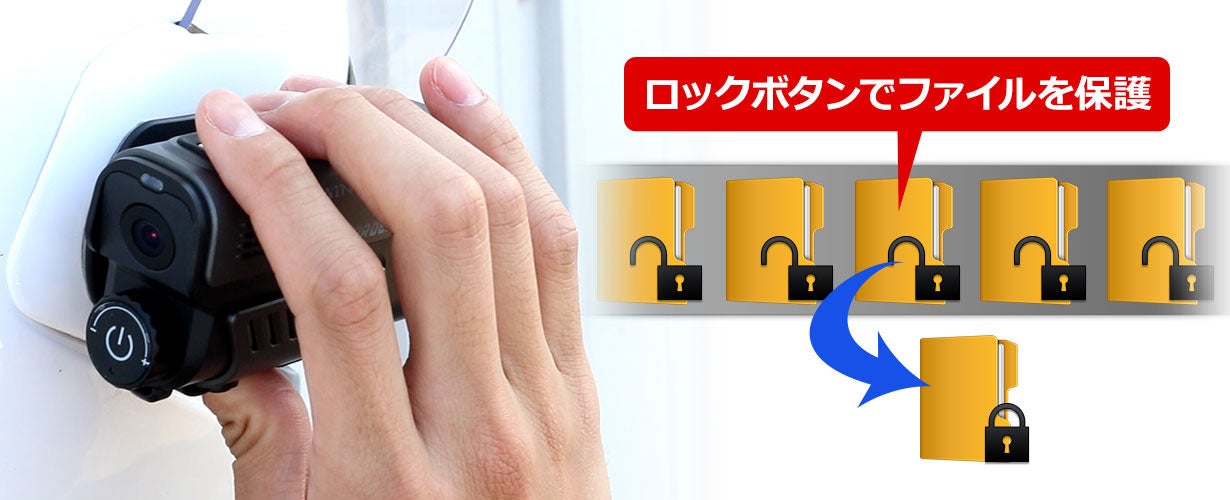 通常録画中に本機のWi-Fi/ロックボタンを短押すことで、録画中の映像ファイルを上書きしないように緊急録画専用フォルダ「フォルダ名:EMR」に保存します。