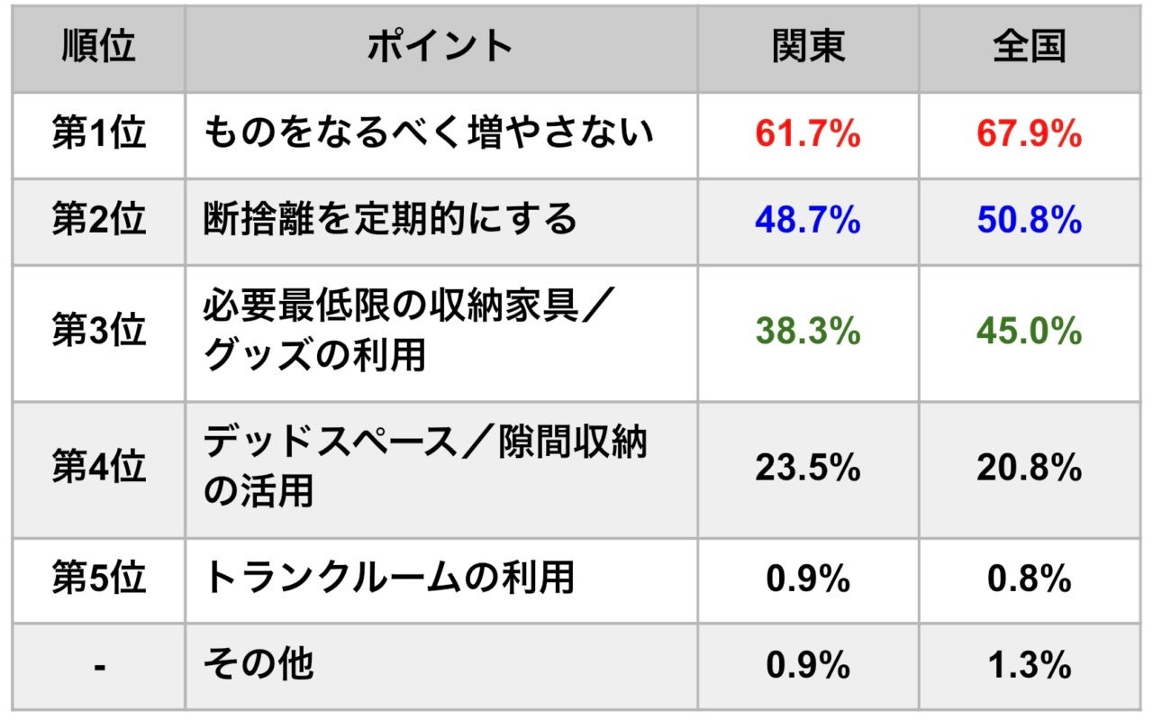 第3位から第5位は収納スペース確保に関する解決法でした。