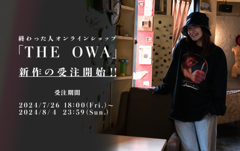 「終わった人」オフィシャルグッズ第二弾が期間限定で発売開始!『古着風ビッグプリントTシャツ』と『リバーシブルバケットハット』を受注販売いたします。